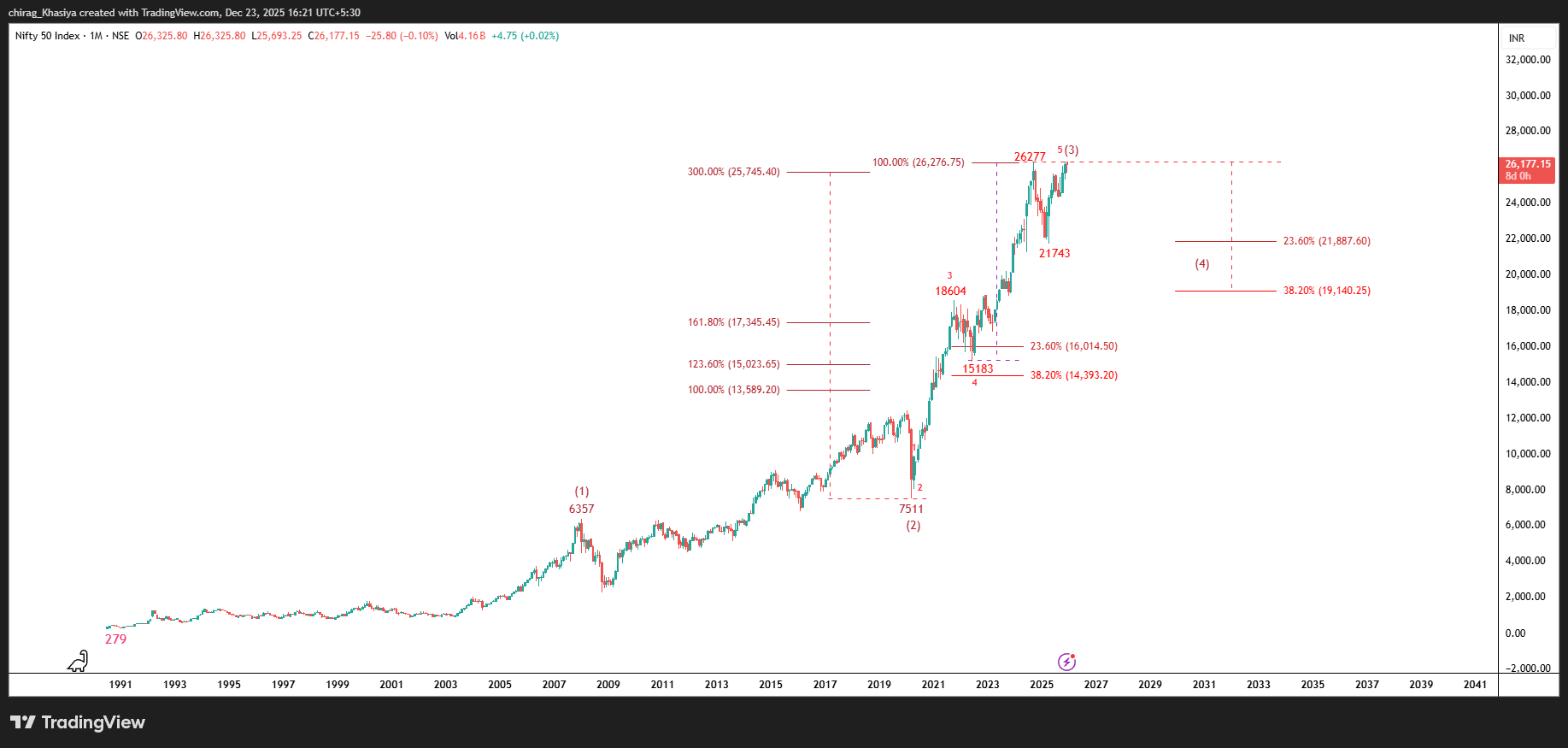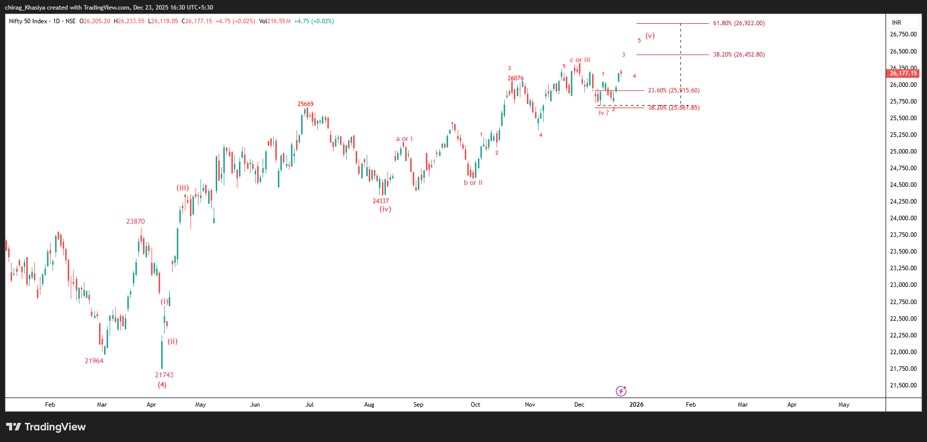 26040 downside breakeven point. As long as Nifty is above 38% of wave (3), upside range 26452-26922 is possible.